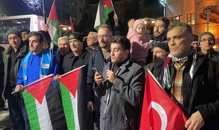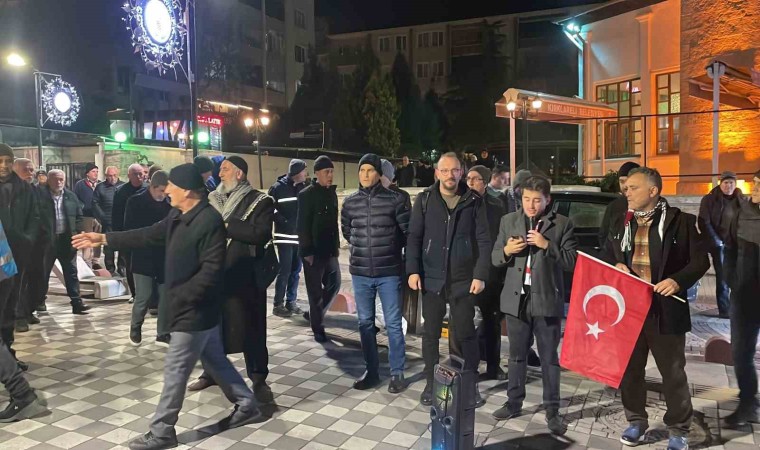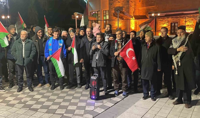 Kırklareli’nde Hızırbey Camisi’nde kılınan yatsı namazı sonrası toplanan STK temsilcileri, Gazze’de insani ateşkes önerisini reddeden ABD’ye tepki gösterdi.