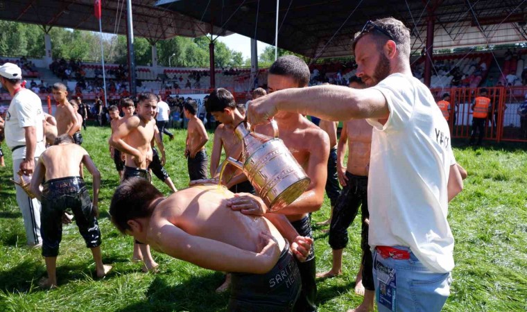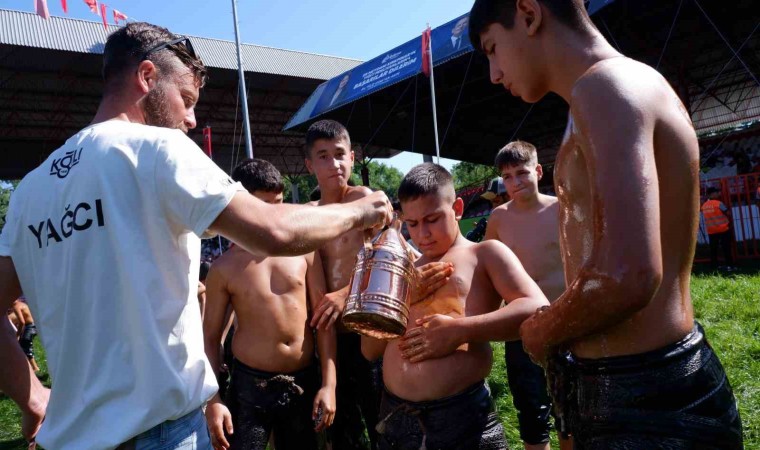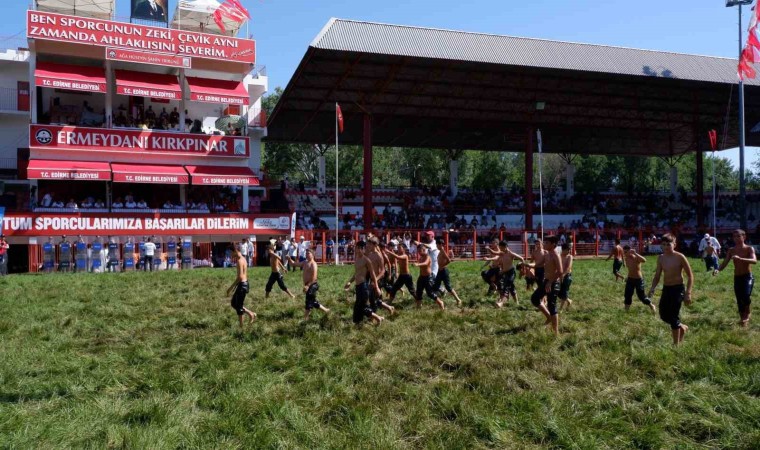 663. Kırkpınar Yağlı Güreşleri’nde heyecan küçük boy pehlivanların güreşleriyle başladı. Sabahın erken saatlerinde Edirne Sarayiçi Er Meydanı’na gelen pehlivanlar, kule hakemlerinin çağrısıyla hazırlıklarını tamamladı. Minikler, yağlanmanın ardından rakipleriyle kol bağladı.