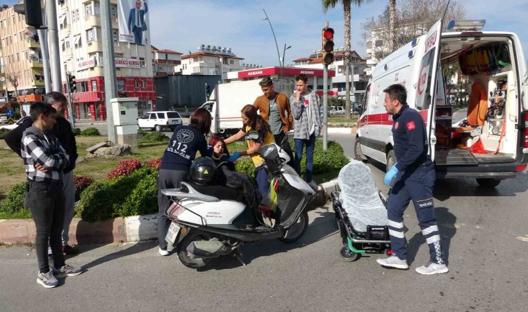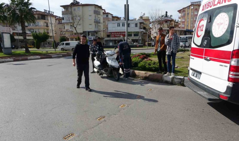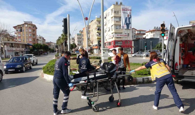 Antalya’nın Manavgat ilçesinde otomobile yandan çarpan motosikletteki 2 kişi yaralandı.