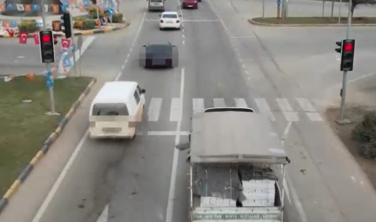 Gaziantep’te, dron destekli yapılan trafik uygulamalarında kırmızı ışık ihlali yaptığı tespit edilen 8 araç sürücüsüne toplam 58 bin 568 TL cezai işlem uygulandı. Araçların kırmızı ışık ihlal anları ise dron kamerasına yansıdı.