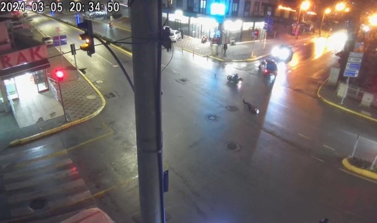 Kocaeli’nin Gölcük ilçesinde kırmızı ışık ihlali yapan motosikletin kavşakta otomobil ile çarpıştığı ve sürücüsünün yola savrulduğu anlar güvenlik kamerasına yansıdı.