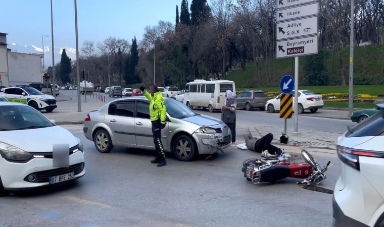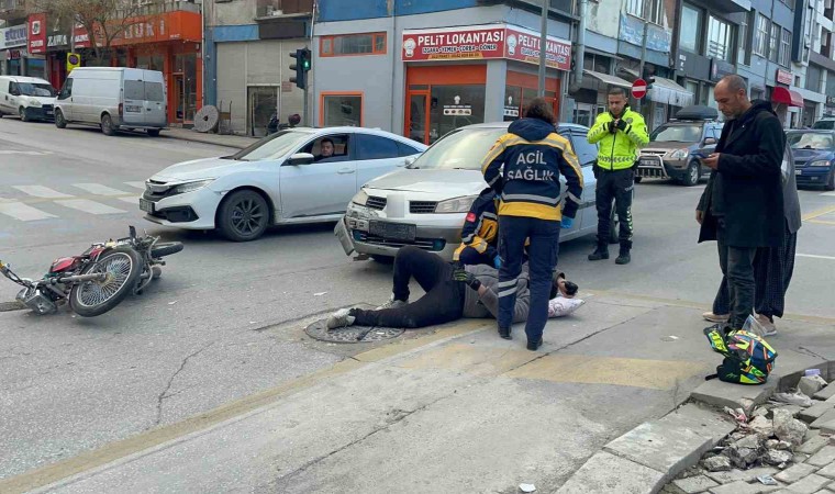 Denizli’nin Merkezefendi ilçesinde kırmızı ışık ihlali yaptığı iddia edilen otomobil sürücüsü, seyir haline geçen motosiklete çarptı. Çarpmanın etkisiyle otomobil ve motosiklette maddi hasar oluşurken, motosiklet sürücüsü yaralandı.