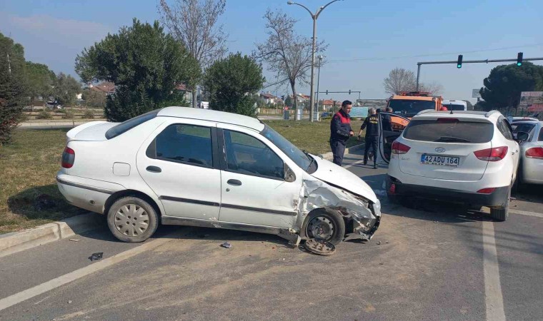 Aydın’ın Efeler ilçesinde trafik ışıklarında bekleyen iki otomobile, başka bir aracın çarpması sonucu meydana gelen kazada 1 kişi yaralandı.