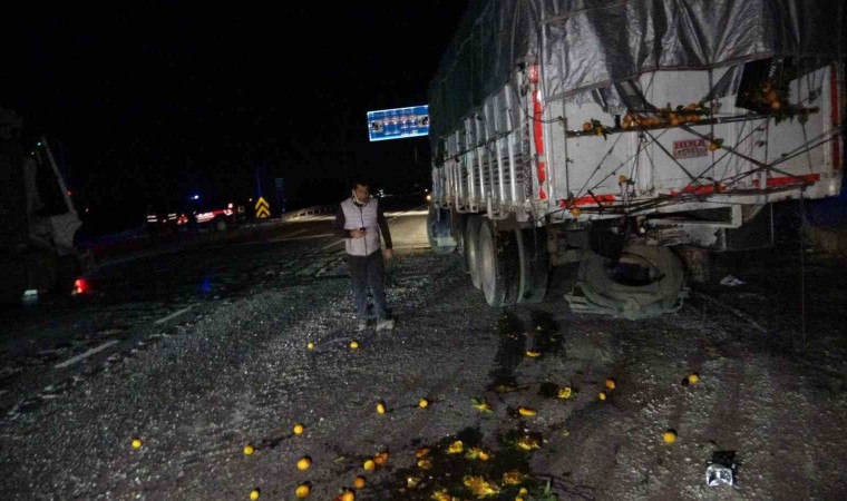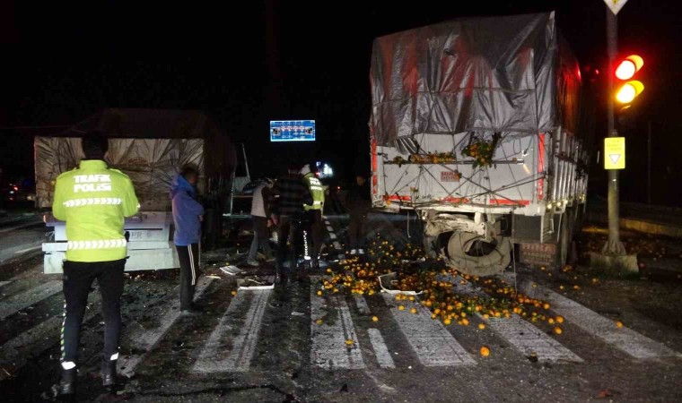 Kaza yapan kamyon ve tırın Mersin’den Antalya’ya geldikleri, kamyonun mandalina, tırın ise bakliyat taşıdığı bildirildi.