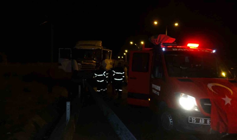 Kaza, Burdur-Isparta karayolu Dostluk kavşağında meydana geldi. Edinilen bilgiye göre, Isparta istikametine doğru seyir halinde olan Hakan K. idaresindeki 48 H 7887 plakalı tıra kavşakta kırmızı ışıkta beklediği sırada arkasından gelen Mustafa Ç. idaresindeki 07 AYL 390 plakalı tır yağış nedeniyle kayganlaşan yolda duramayarak arkadan çarpıp bariyerlere girdi. Çarpmanın etkisiyle araçta sıkışan Mustafa Ç. yaralandı. Çevredeki vatandaşların 112 Acil Çağrı Merkezi’ne ihbarı üzerine bölgeye polis, sağlık, jandarma ve itfaiye ekipleri sevk edildi. Olay yerine gelen itfaiye ekipleri araçta sıkışan Mustafa Ç.’yi sıkıştığı yerden çıkardı. Ambulansla Burdur Devlet Hastanesi’ne kaldırılan yaralının durumunun iyi olduğu öğrenildi. Kazayla ilgili inceleme başlatıldı.