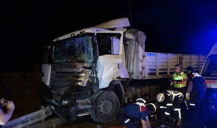 Burdur-Isparta karayolunda kırmızı ışıkta bekleyen tıra arkadan çarpan tır sürücüsü araçta sıkışarak yaralandı.