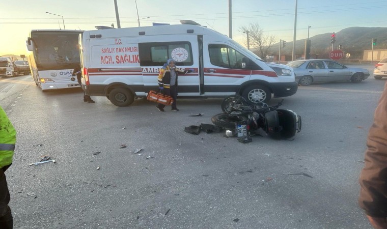 Çorum’un Osmancık ilçesinde kırmızı ışık ihlali yapan motosiklet, otomobil ile çarpıştı. Kazada motosiklet sürücüsü yaralandı.