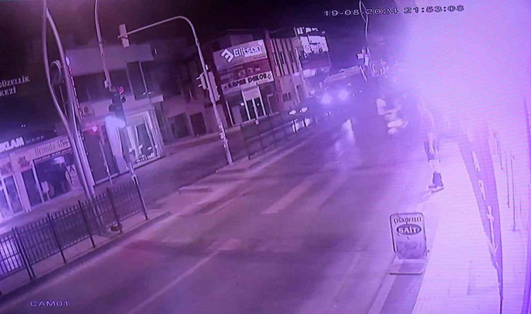 Öte yandan, 3 kişinin yaralanması ile neticelenen kaza güvenlik kamerasına yansıdı. Görüntülerde, kırmızı ışıkta yolun karşısına geçmek isteyen yayaya motosikletin çarptığı anlar yer aldı. Çarpışmanın etkisi ile yaya ile motosiklet üzerinde bulunanların savrulduğu anlar görüntülere yansıdı.