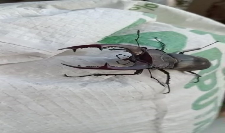 Türkiye’de nesli tükenen türler arasında kırmızı listede bulunan ve yaşam alanlarının genişletilmesi için çalışmalar yürütülen geyik böceği (Lucanus cervus) Elazığ’da görüntülendi.