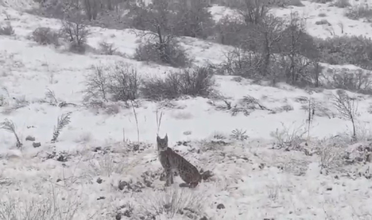 Erzincan’ın Refahiye ilçesinde nesli tükenme tehdidi altında olduğu için Dünya Doğa ve Doğal Kaynakları Koruma Birliği (IUCN) kırmızı listesinde yer alan vaşak görüntülendi.