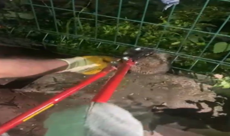 Bolu’da bahçe tellerine sıkışan kirpi, itfaiye ekipleri tarafından kurtarıldı.