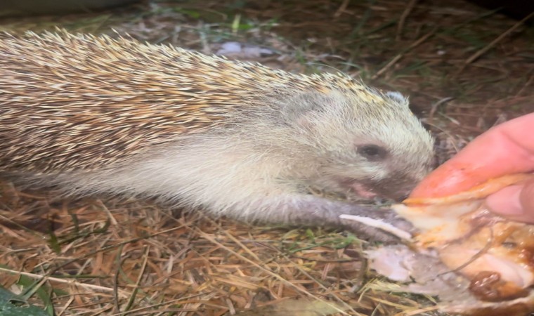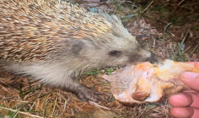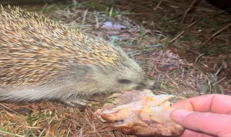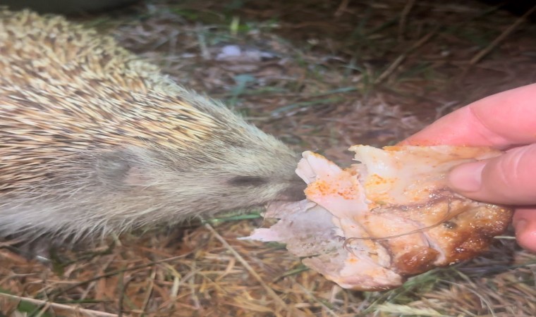Bolu’da doğasever bir vatandaş yanına gelen kirpiyi kızarmış tavukla besledi. Kirpinin tavuk yediği anların görüntüleri sosyal medyada ilgi gördü.