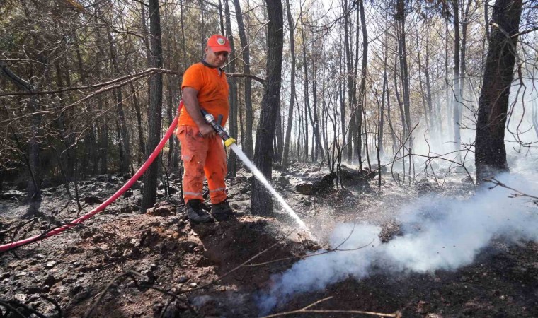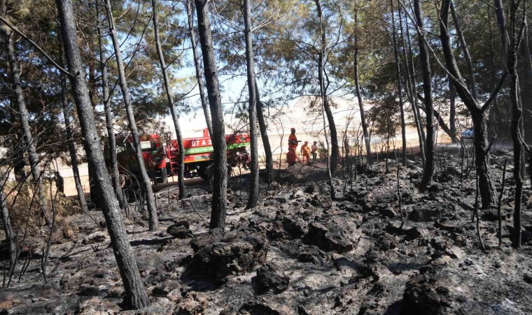 Yangın bölgesinde Antalya Orman Bölge Müdürlüğü’nün soğutma çalışmaları devam ediyor.