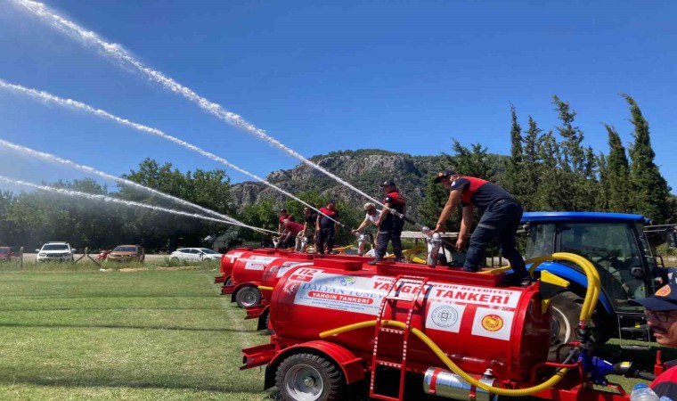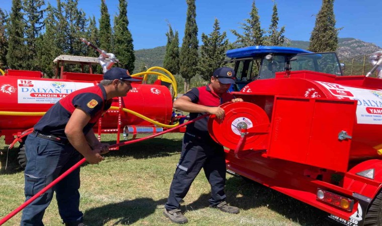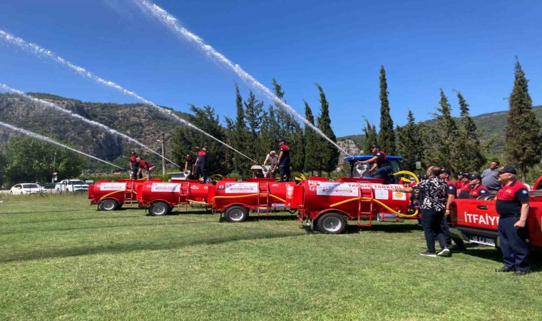 Dalyan TUSEV Başkanı Ertuğrul Ercan, geçtiğimiz yıl çıkan yangınlardan sonra 12 mahalle muhtarlığına çeşitli ekipmanlar dağıttıklarını hatırlatarak, "Orta ve uzun vadede yangına ilk müdahale konusunda nasıl destek verebiliriz konusunda çalışma yaptık. İrfan Aydemir ağabeyin desteği ile yaptırdığımız 3 ton kapasiteli, üzerinde tomo fıskiyesi ve arkasında 50 metre hortumla müdahale tabancası olan yangına müdahale tankerlerini Muğla Büyükşehir Belediyesi İtfaiye Daire Başkanlığına hibe ettik. Tankerler Mergenli, Gökbel, Çandır ve Ekincik mahallelerinde konuşlanacak. Umarım kullanmak zorunda kalmayız.” dedi.