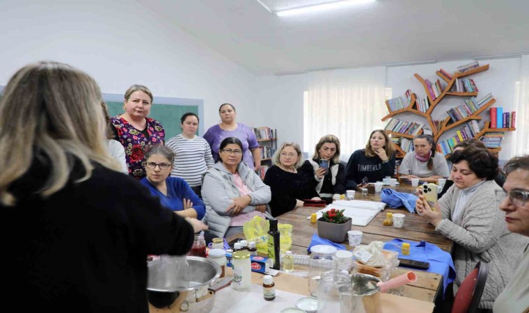 Muğla’da kadınların üretime katılması, kadın emeğinin üretimle buluşması için Büyükşehir Belediyesi kırsalda eğitimlere ve projelere devam ediyor. Bu kapsamda Büyükşehir Belediyesi tarafından Ula ilçesi Esentepe Mahallesi’nde kadınlara balmumu eğitimi verildi.