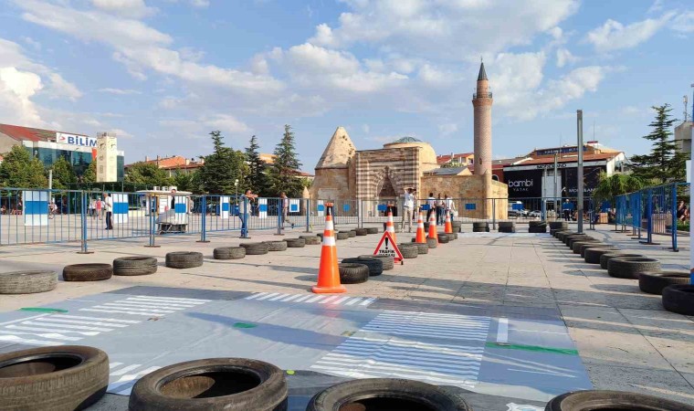 Uygulamalı ve videolu olarak verilen Trafikte Geliştirme Eğitimleri, Cacabey Meydanı’nda üç gün boyunca devam edecek.