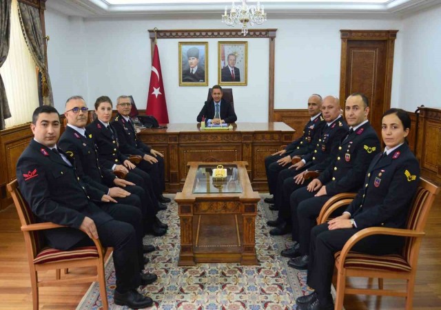 KIRŞEHİR'DE JANDARMA TEŞKİLATININ KURULUŞUNUN 184. YILI NEDENİYLE DÜZENLENEN PROGRAMDA, JANDARMA KOMUTANI ALBAY SADIK GÜLECEN, VALİ BUHARA'YI ZİYARET ETTİ.