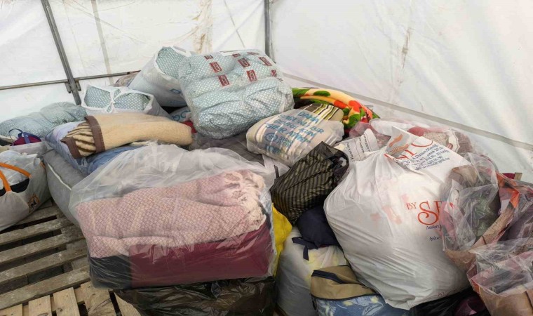 Cacabey Meydanı’nda oluşturulan çadırda kışlık kıyafet, battaniye, yorgan, bot, ayakkabı, eşofman ve kışlık çorap gibi ürünler toplandı.