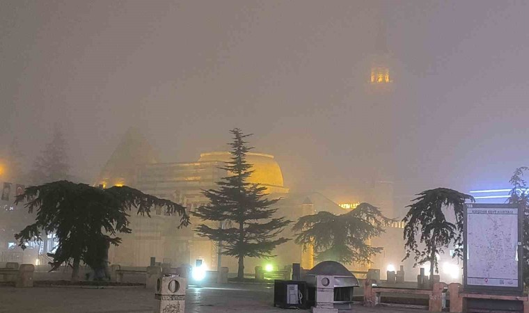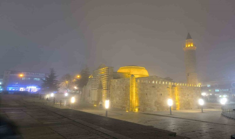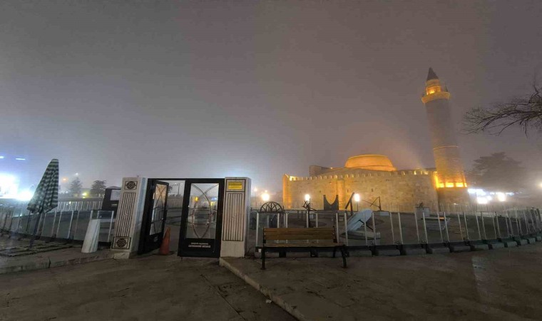 Kırşehir’de akşam saatlerinde başlayan yoğun sis, tarihi mekanlarda kartpostallık görüntü oluşturdu.