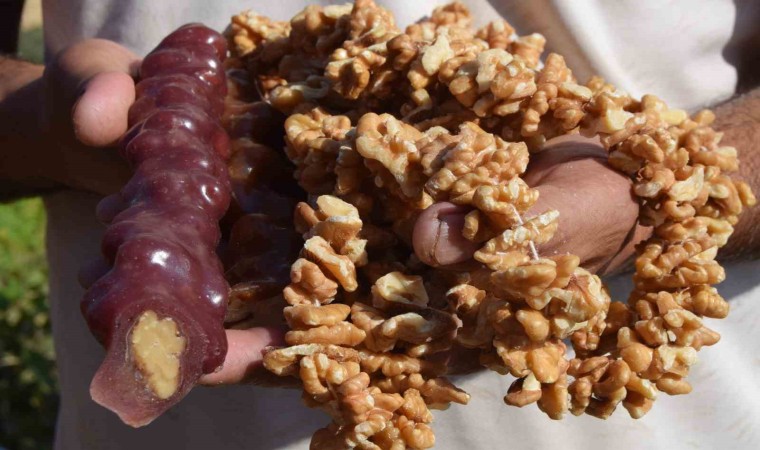 Elazığ’da bağ bozumu döneminde köylerde geleneksel yöntemlerle yapılan ve kış mevsiminde çerez olarak tüketilen orcik (cevizli sucuk), yoğun talep görüyor.