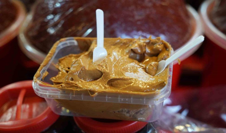 Gaziantep’te kış aylarının vazgeçilmezi olan ve soğuk havada vücudu sıcak tutmasıyla bilinen katı üzüm pekmezi vatandaşlar tarafından yoğun ilgi görüyor.