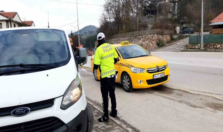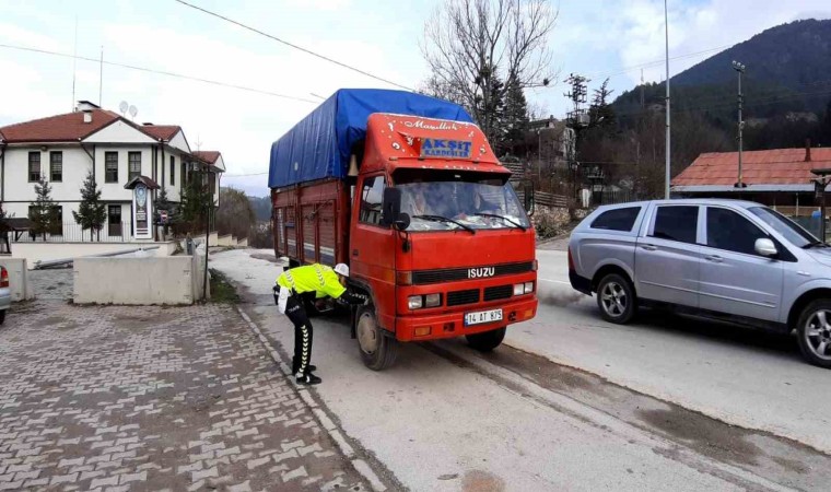 Bolu’nun Mudurnu ilçesinin giriş yolunda trafik polisi ekipleri denetimlerini sıkılaştırdı. Kış lastiği olmayan araçlar polis ekiplerine takıldı.