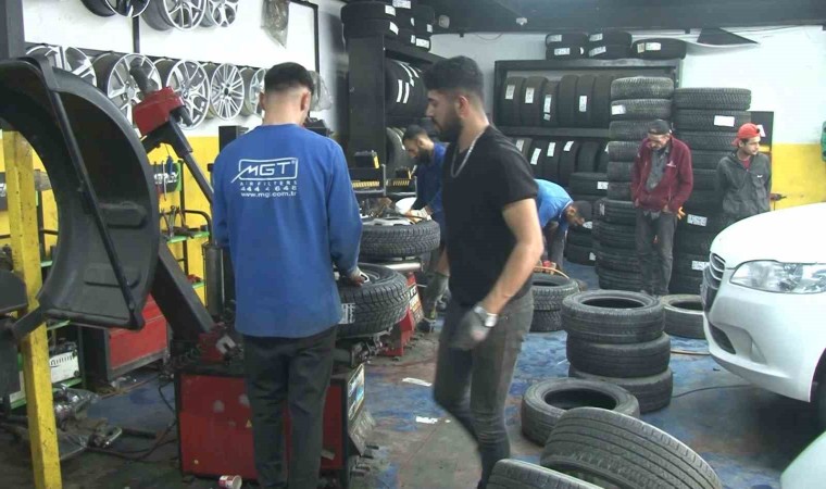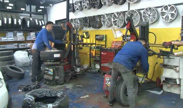 Ticari araçlar için kış lastiği zorunluluğu 25 Kasım’a çekilirken araçlarına kar lastiği taktırmak isteyen vatandaşlar ve mecburi takılması gereken ticari araç sahipleri lastikçilere akın etti.