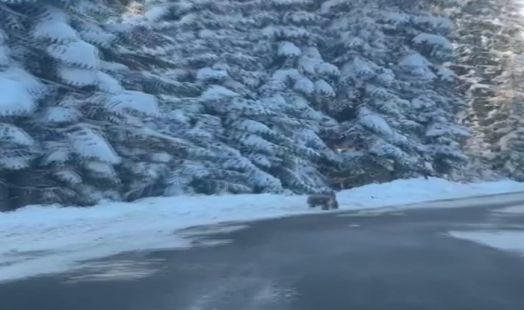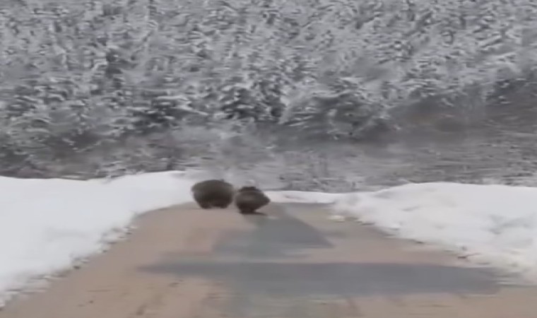 Kastamonu’nun Daday ilçesine bağlı Ballıdağ mevkiinde kar yağışı sonrası karla kaplanan ormanlık alanda yiyecek arayan ayılar vatandaşlar tarafından görüntülendi. Yol üzerinde yürüyen ayılar vatandaşları görünce koşarak uzaklaşmaya çalıştı. Bir süre sonra ormanlık alana giren ayılar gözden kayboldu.