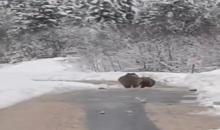 Kastamonu’nun Daday ilçesinde kış uykusuna yatamayan ayılar, karla kaplanan ormanlık alanda vatandaşlar tarafından görüntülendi.