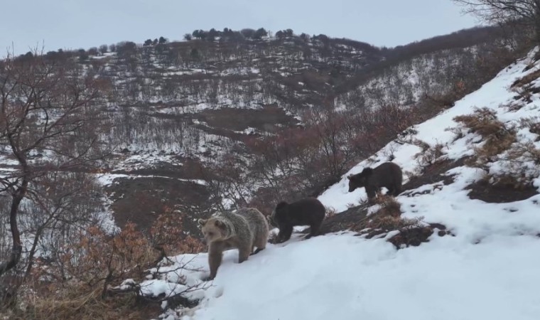 Anne ve iki yavrudan oluşan ayı ailesi, Tunceli’de görüntülendi. Ayılar, kendilerini çeken doğa fotoğrafçısına adeta poz verdi.