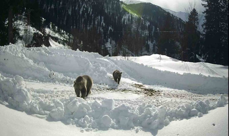 Rize’nin Çayeli ilçesinde kış uykusuna yatmayarak gezinen 2 ayı, arıcıların kurduğu güvenlik kamerasına yakalandı.