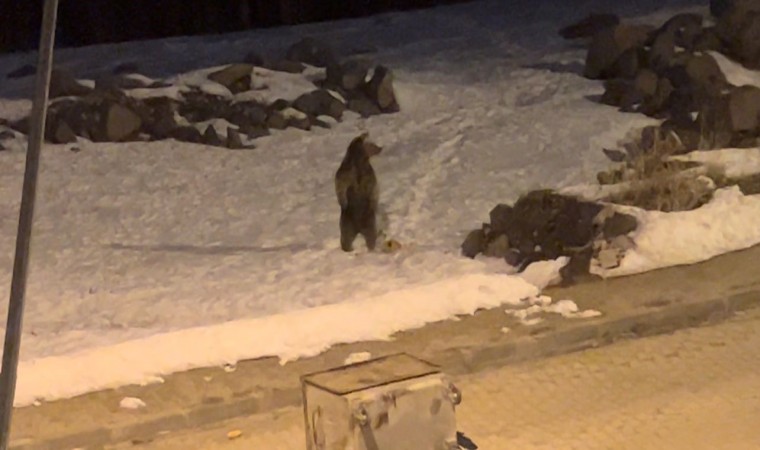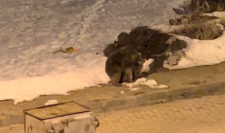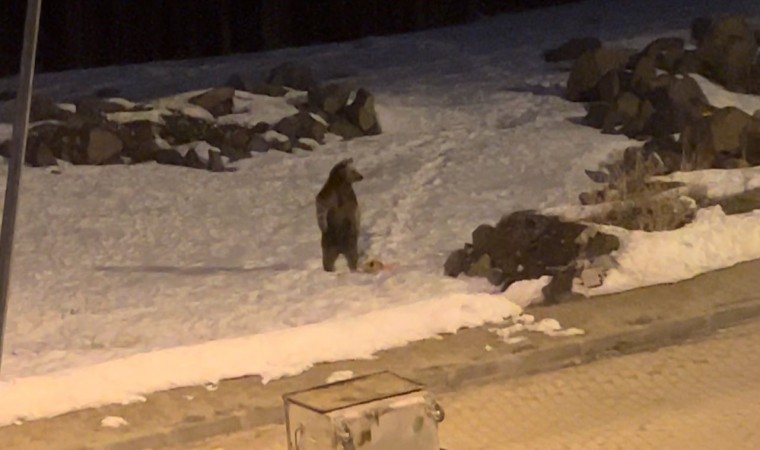 Kış uykusundan uyanan boz ayılar, beslenebilmek için Sarıkamış ilçe merkezine inerek gece saatlerinde yiyecek aramaya başladı.