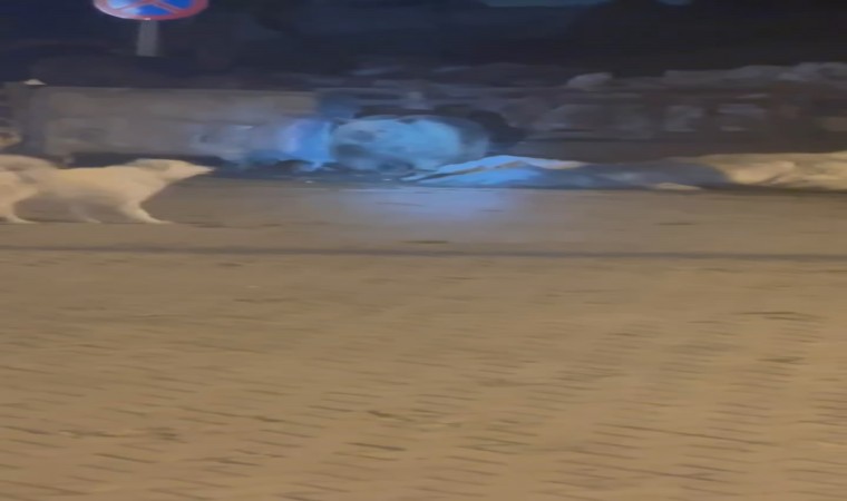 Uludağ Sarıalan’da kış uykusundan uyanan bir ayı, aç kalınca çöp konteynerlerine dadandı. Yemek arayışına çıkan ayı kovaları tek tek devirip yiyecek bulmaya çalıştı. Koruyucu köpekler tarafından rahatsız edilen ayı bir süre yemek arayıp, daha sonra ormanlık alana doğru kayıplara karıştı. O anlar bir vatandaşın kamerasına saniye saniye yansıdı.