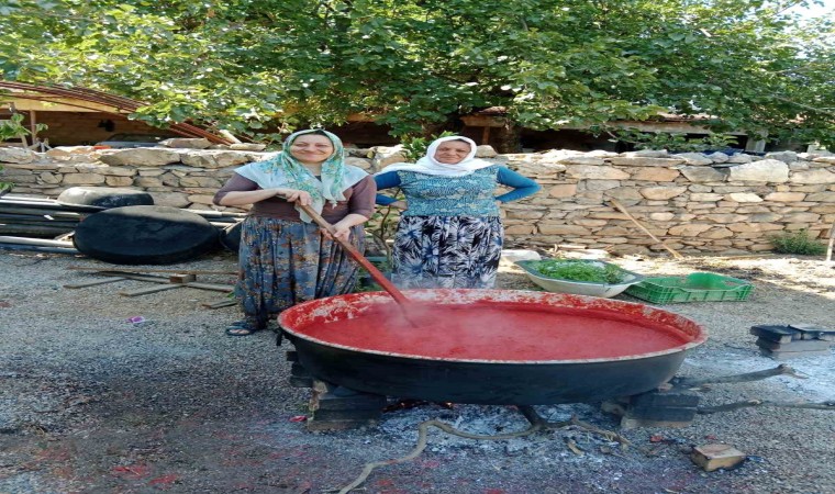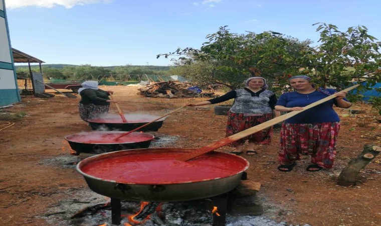 İznik ilçesinde, kazanlarla kışlık salça yapan kadınlar, hem doğal ürün tüketmiş hem de ev ekonomisine katkıda bulunmuş oluyor.