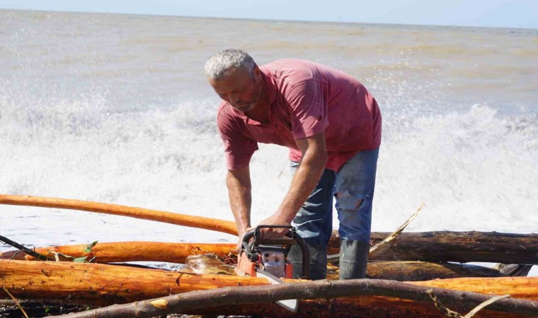 Cide’de yaşadığını belirten Erdoğan Kars ise, “Cide ilçesinde yaşıyorum. Köyüm ilçe merkezine 40 kilometre uzaklıkta bulunuyor. Dün akşamki yağmur ırmakları ve dereleri taşırdı. Çay boyunca gelen odunlarda sahile vurdu. Bizlerde bu odunları toplayıp yakıyoruz” diye konuştu.