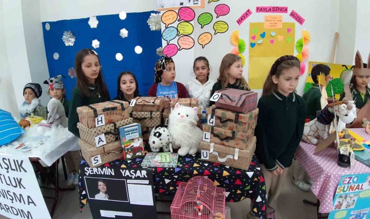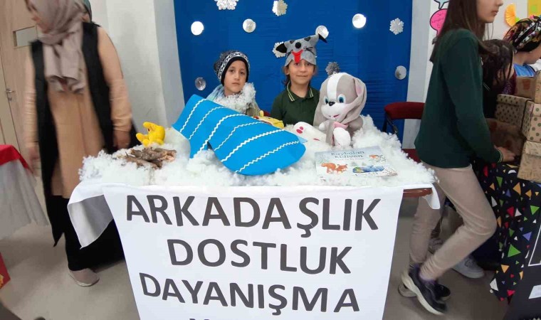 Bolu’da "Okudum, Hissettim, Paylaşıyorum" projesi çerçevesinde okudukları kitaplardan akılda kalan objeleri tasarlayan ve karakterleri canlandıran minik öğrenciler, kostümleriyle renkli görüntülere sahne oldu.