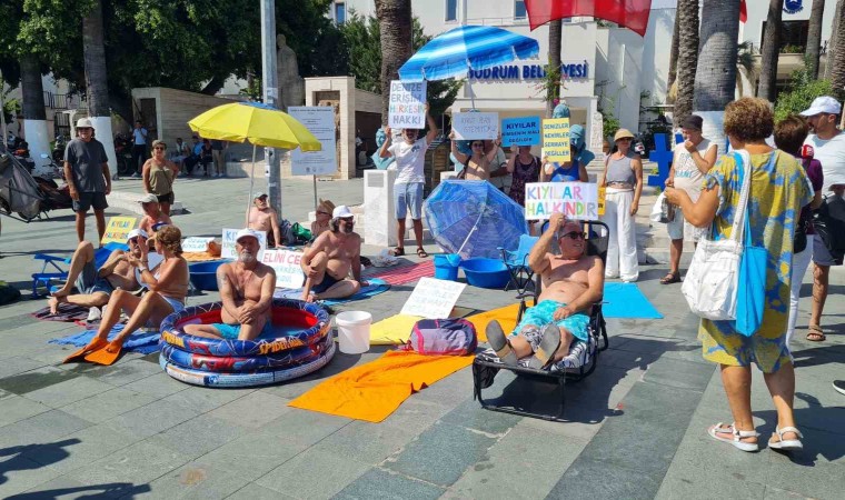 Muğla’nın Bodrum ilçesinin kent meydanında bir araya gelen vatandaşlar, kıyı işgallerine karşı renkli bir eylem gerçekleştirdi. Şemsiyelerini, havlularını ve şişme havuzlarını alıp meydana gelen vatandaşlar, yetkililere seslerini duyurmaya çalıştı.