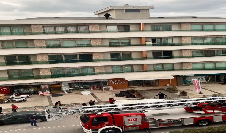 Balıkesir’in Edremit ilçesinde kız arkadaşı ile tartışan genç, 5 katlı apartmanın çatısına çıktı. Polis, genci ikna ederek aşağı indirdi.
