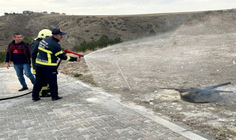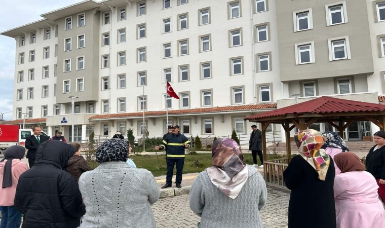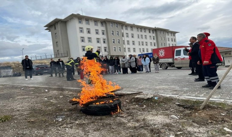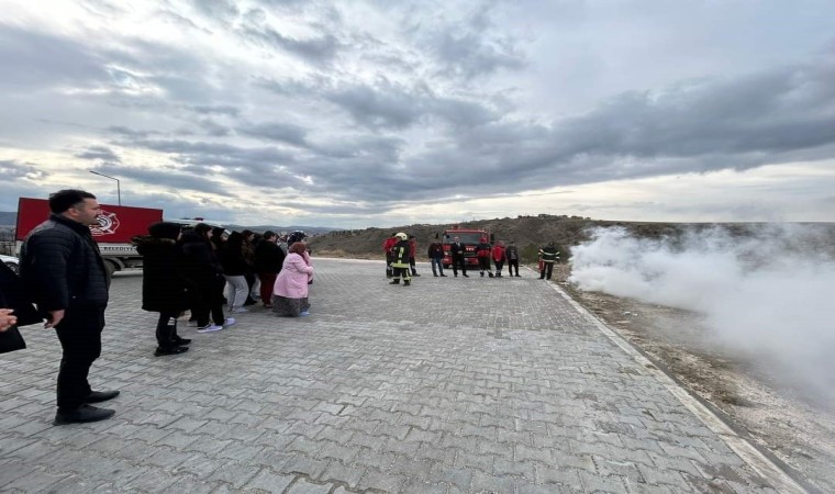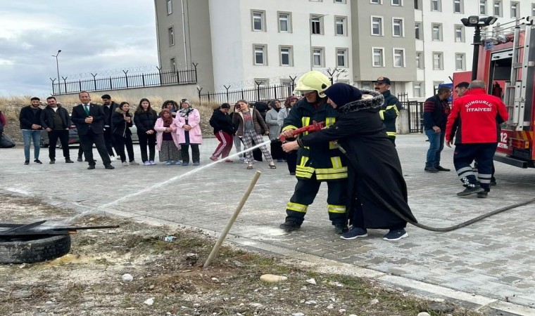İtfaiye ekibi, yurdumuzun boş alanında yakılan ateşle, yangın anında neler yapılması gerektiğini, yangın söndürme aşamalarını, yangın söndürme tüpünün nasıl kullanıldığı gibi bilgileri uygulamalı olarak gösterip tatbikata son verdi.