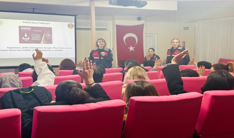 Aydın’da jandarma ekipleri Nazilli Gevherhan Sultan KYK Kız Yurdu’nda kalan öğrencilere bilgilendirmede bulunuldu.