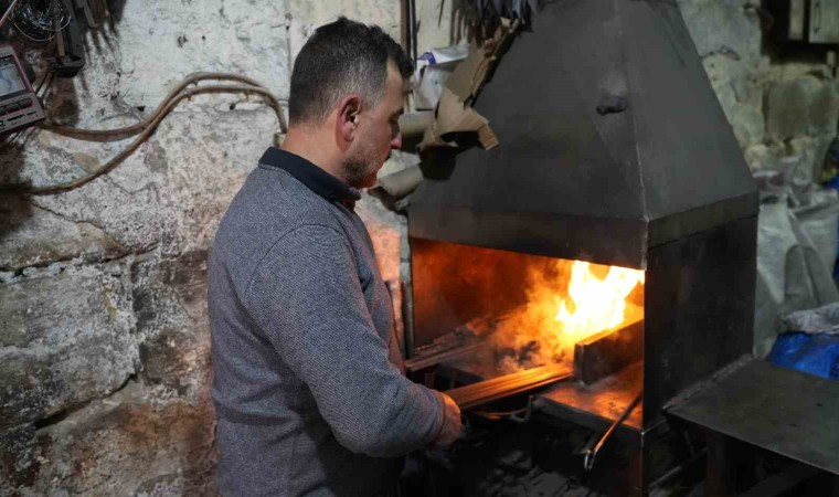 Gaziantep’te yaşayan Gökmen Gürban, demircilik mesleğini kış aylarında da sürdürerek kızgın ocağın başında hem demir dövüyor hem de ısınıyor.