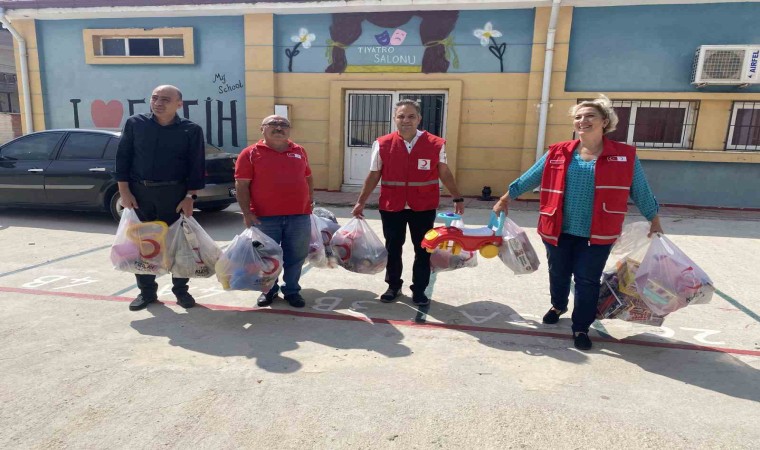Manisa’nın Alaşehir ilçesinde yardımseverlerin destekleriyle toplanan oyuncaklar Alaşehir Türk Kızılay Derneği tarafından Fatih İlkokulu Anasınıfı öğrencilerine dağıtıldı.