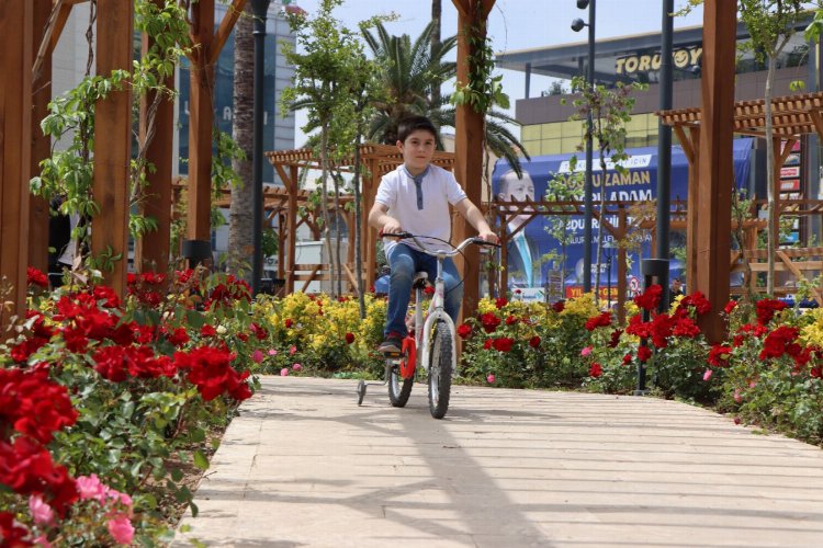 Yürüyüş alanları, aydınlatmalar, dekoratif kaldırım taşları, ağaçlandırma ve akıllı şehir mobilyalarıyla donatılan Kızılay Bahçesi Büyükşehir Belediyesi Park ve Bahçeler Daire Başkanlığı bünyesindeki seralarda üretilen gül fidelerinin toprakla buluşturulmasıyla rengârenk bir görüntü oluşturdu.