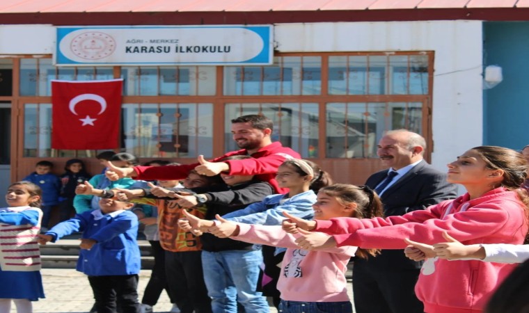 Ağrı Valisi Mustafa Koç’un eşi Neslihan Gül Koç’un da katıldığı Karasu köyü etkinliğinde, Koç öğrencilerle tek tek sohbet ederek çeşitli hediyeler verdi.