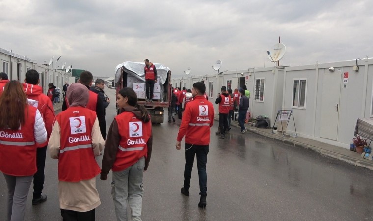 Kahramanmaraş merkezli depremlerden etkilenen Osmaniye’de, Kızılay kış mevsimi nedeniyle konteyner kentlerde yaşayan depremzedelere çeşitli yardım malzemeleri dağıttı.