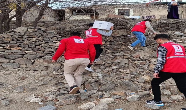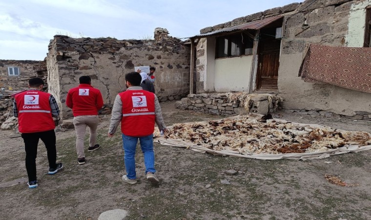Türk Kızılay’ı Ağrı şubesi, köy köy dolaşarak gıda yardımı yapıyor.