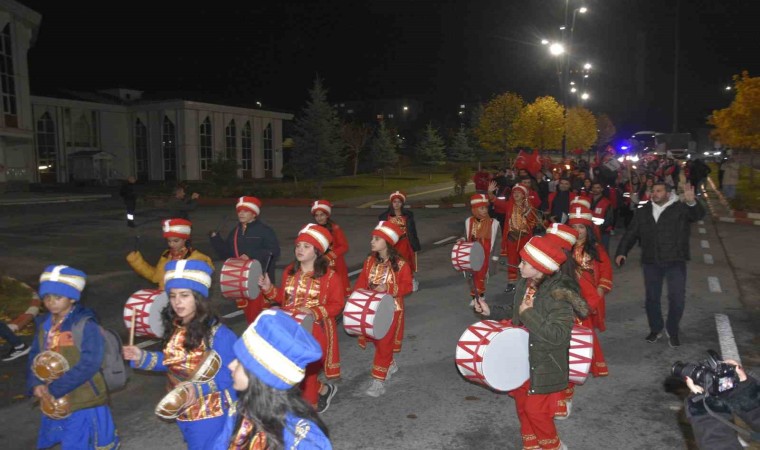 Bitlis Eren Üniversitesi Rahva Yerleşkesi içerisinde bulunan kız yurdu önünde toplanan yaklaşık 150 kişi, ellerinde meşalelerle mehteran takımının çaldığı marşlar eşliğinde yürüyüş yaptı. Yaklaşık 2 kilometre yürüyen gençler, daha sonra kendileri için hazırlanan Kış Bahçesi’ndeki ateşin etrafında ısındı.