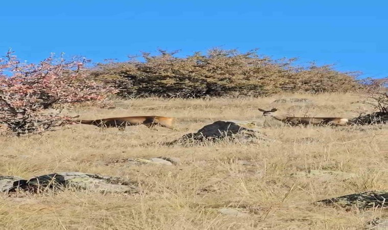 Doğa Fotoğrafçısı Ömer Melih Demirbaş, Kızılcahamam’da araba ile arazide seyahat ederken, geyik türü olan bir çift karaca gördü. Fotoğraf makinesine sarılan Demirbaş, o anları ölümsüzleştirmek için kayda girdi. Ortaya ise renkli görüntüler çıktı.