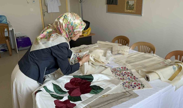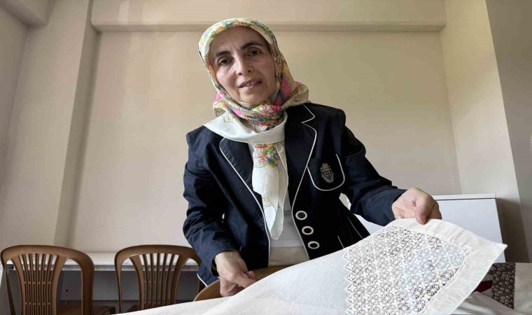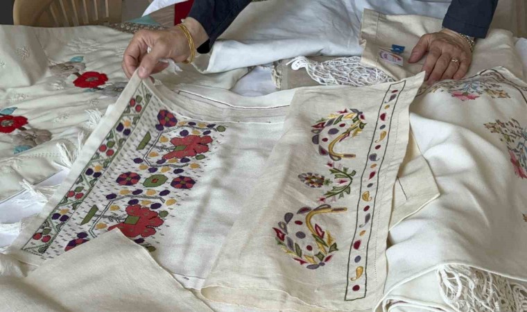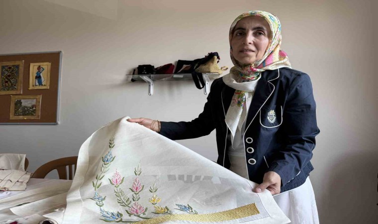 Gençlik yıllarından bu yana el nakışı yapmaktan vazgeçmeyen Meral Çarıkçı Kaba, makinelerin bile yapmakta zorlandığı ipek kumaşlara işlediği nakışlarla görenlerin takdirini kazanıyor.