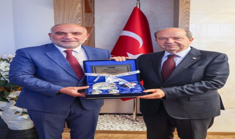 Başkan İbrahim Sandıkçı, ziyaret anısına KKTC Cumhurbaşkanı Ersin Tatar’a hediye takdiminde bulundu.